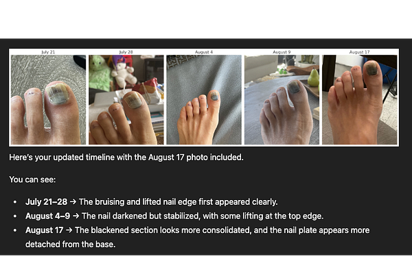 Monitoring the care of my toe injury with Apple Fitness and ChatGPT