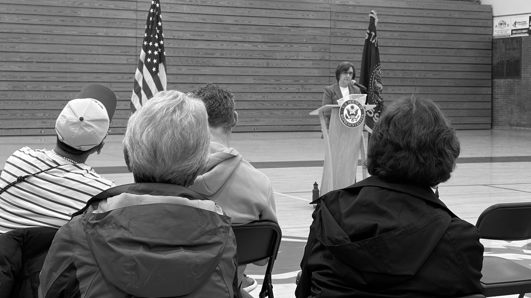 The mechanics were what you would expect. Staff were present to handle constituent casework. Questions were handled by lottery. The session ran about an hour and ended on time.