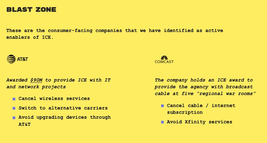 Internet providers are one place where I can still act. We recently left Astound Broadband, formerly WaveG, for CenturyLink (now QuantumFiber) because Astound kept raising prices after expiring promotional deals. CenturyLink gave us steadier pricing. Now CenturyLink has spun out its QuantumFiber business and sold it to AT&T, who maintains significant ties to ICE. That turns stability into a different kind of problem. Staying put starts to feel like complicity.