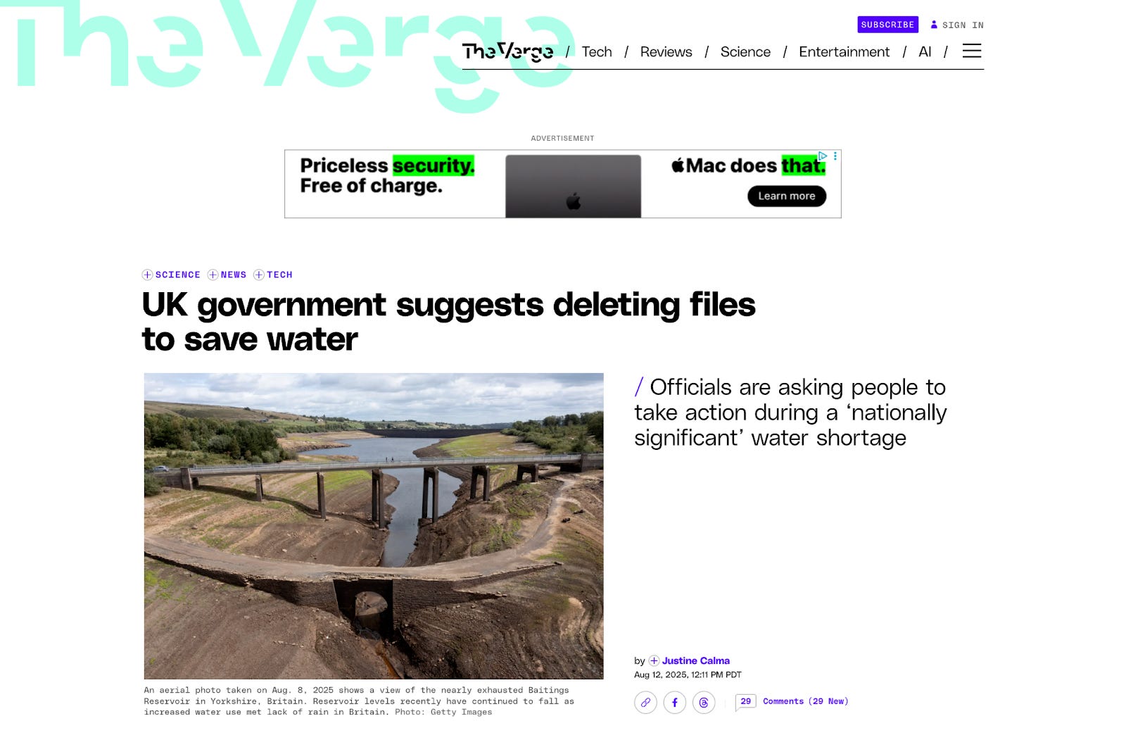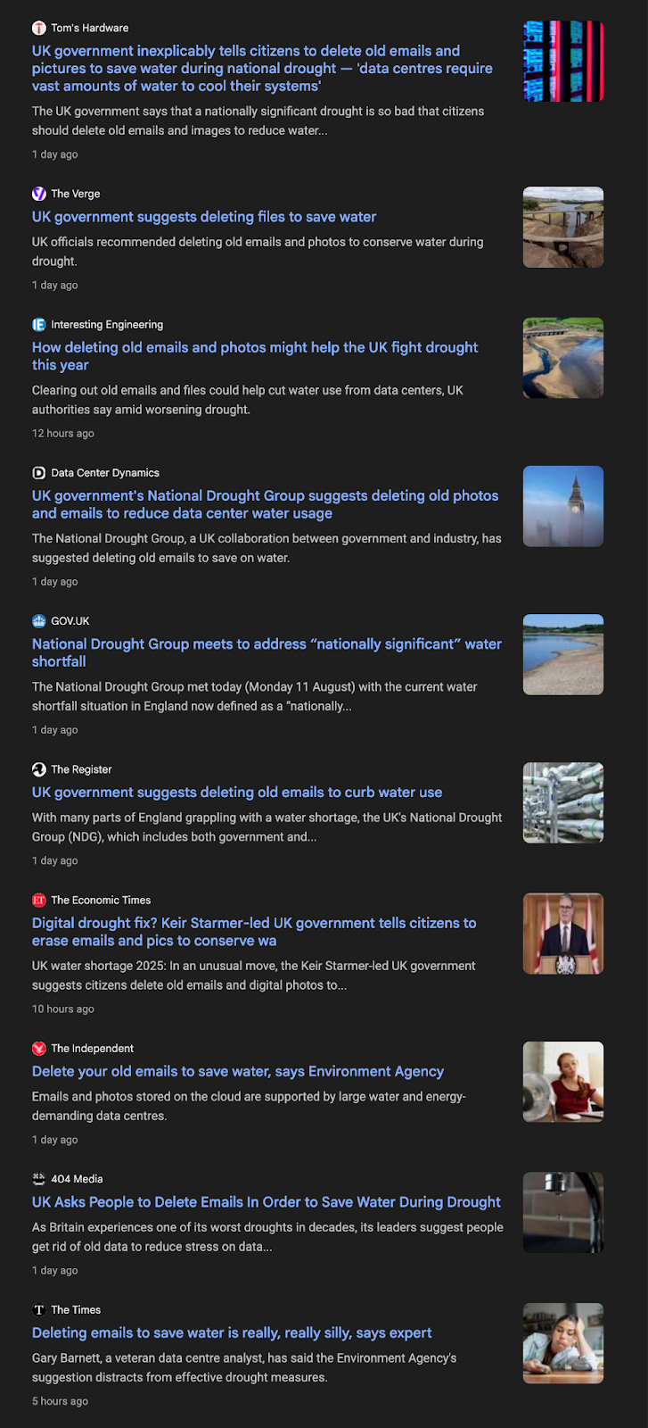 When I first saw the UK government’s suggestion to delete old emails to help conserve water, I fell for the click-bait. Surely this wasn’t serious climate advice, was it?